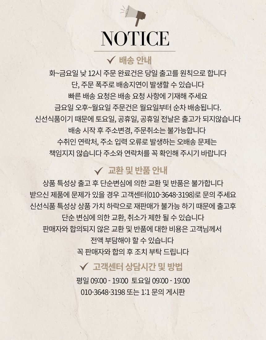 | 제조연월일, 소비기한 또는 품질유지기한 | 상세정보 별도표기 |