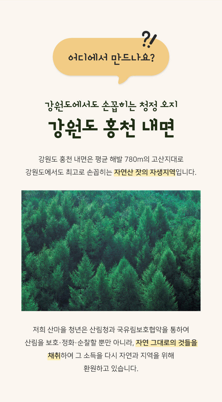 | 생산자 및 소재지 | 농업회사법인(주)바농/강원도 홍천군 양지말길 11 |