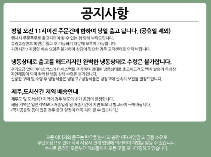 | 소비자상담 관련 전화번호 | 한우물 080-868-8200 |