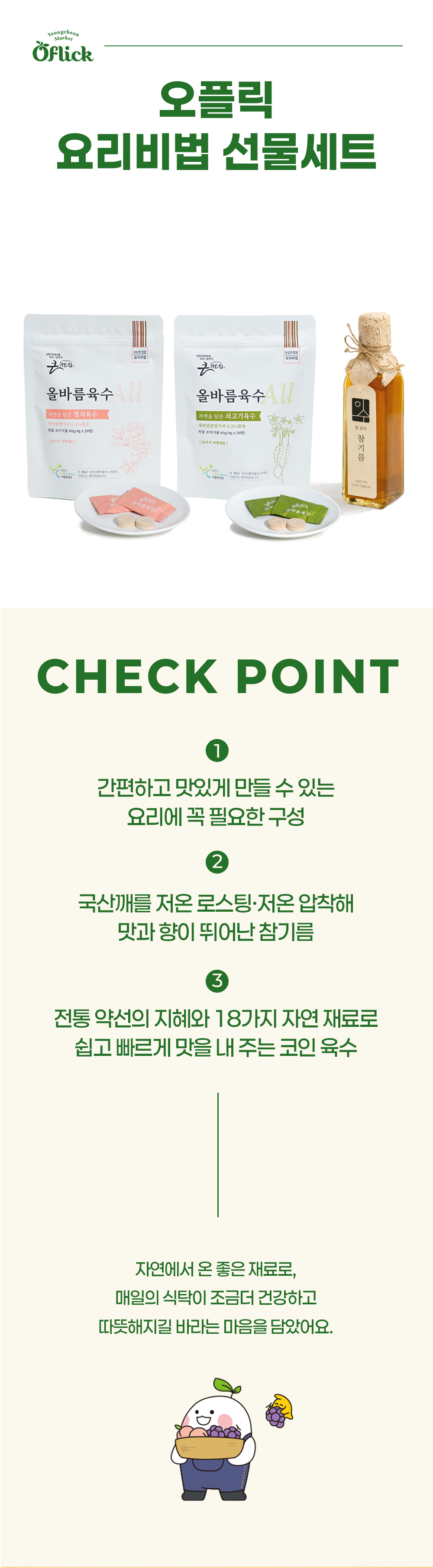 오플릭 요리비법 선물세트 340g(쇠고기 4g*20알+멸치 4g*20알+참기름 180ml)