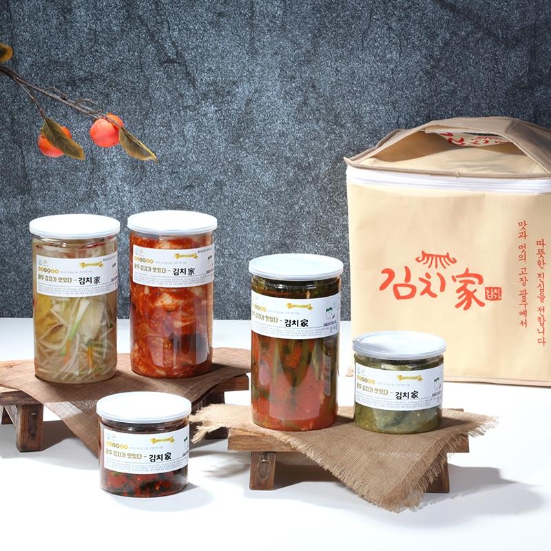 구성은 총각김치, 깍두기, 갓김치, 파김치, 배추김치 로 되어 있어요.