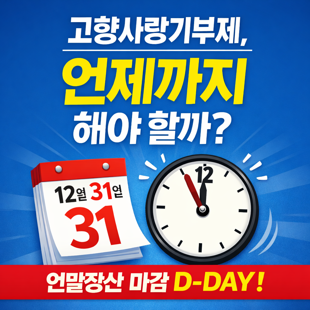 1️⃣ 고향사랑기부제는 해당 연도 12월 31일 23:59:59까지 결제 완료해야 연말정산 적용