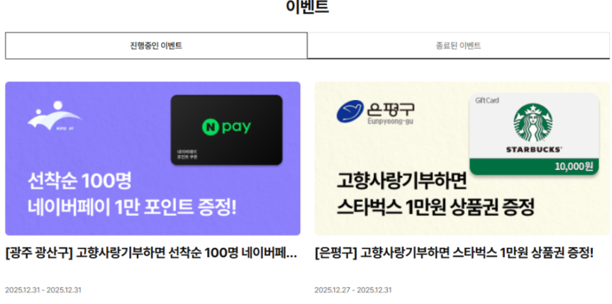 2️⃣ 기부금의 30% 이내 답례품 제공 + 이벤트 추가 혜택
