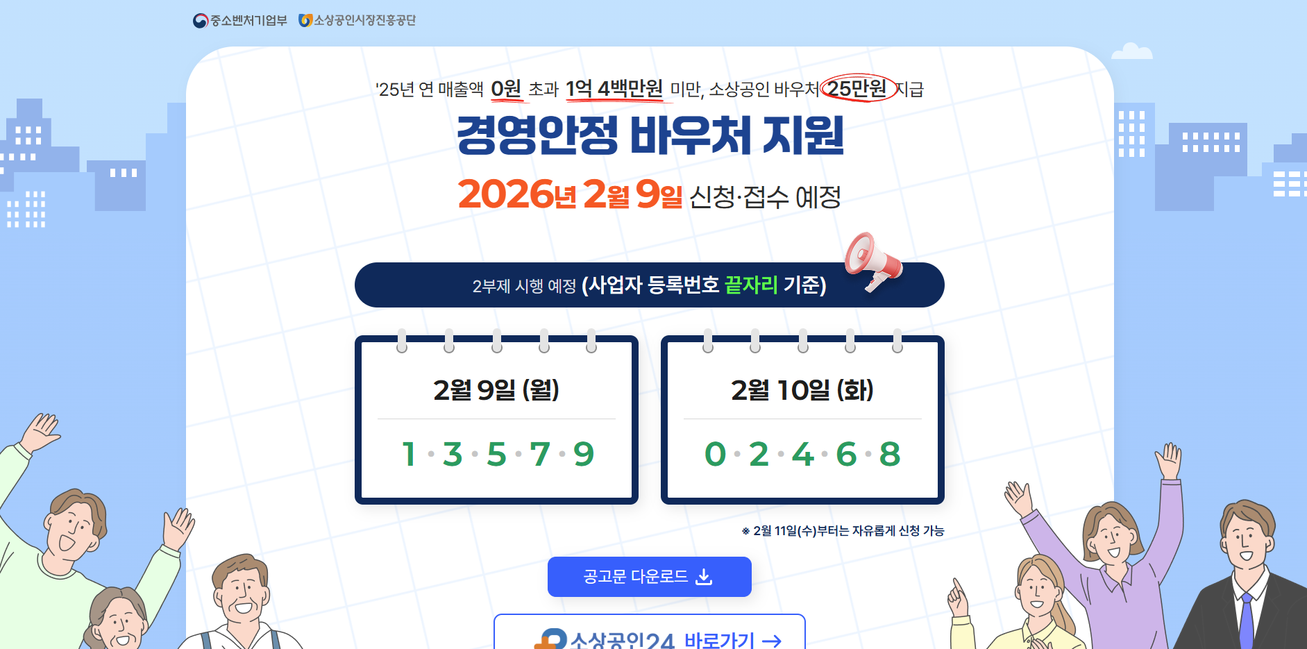 신청은 2월 9일부터 시작되며, 첫 이틀은 사업자번호 끝자리 홀짝제로 운영됩니다.