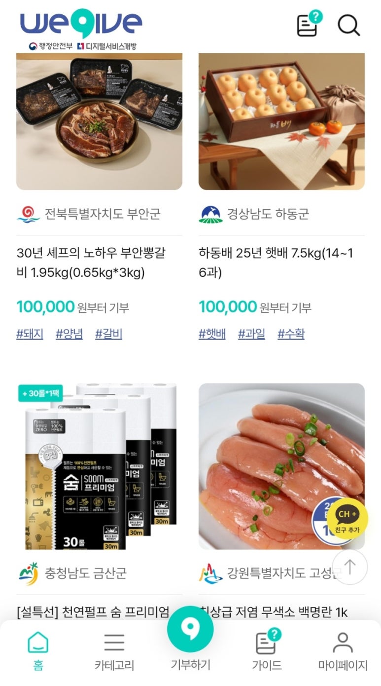 내가 선택한 답례품 주소: https://www.wegive.co.kr/shop/goodsView/0000001107