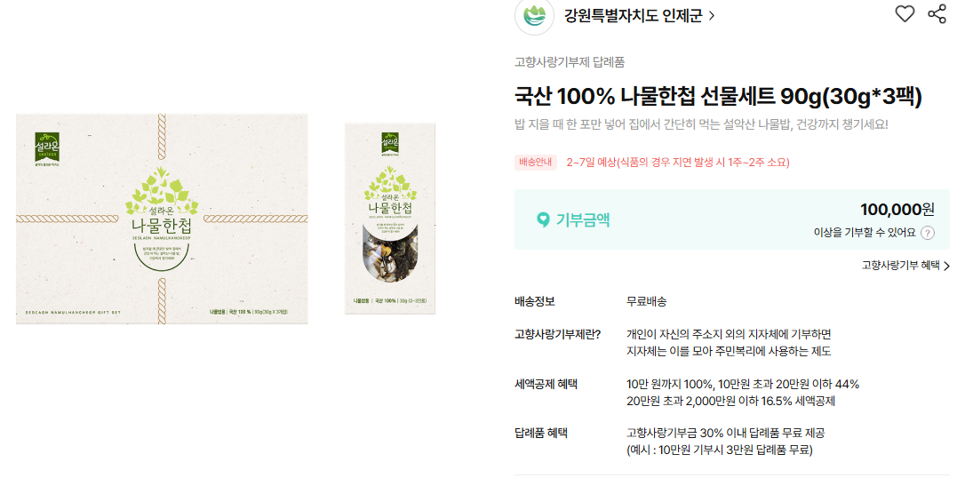 ⭐️ 나물한첩 선물세트_강원도 인제군