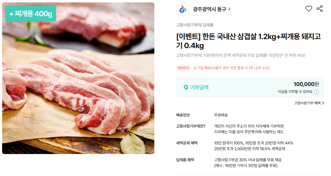 광주동구에서는 삼겹살 답례품에 추가 이벤트를 많이 진행했었던 곳이였는데요.