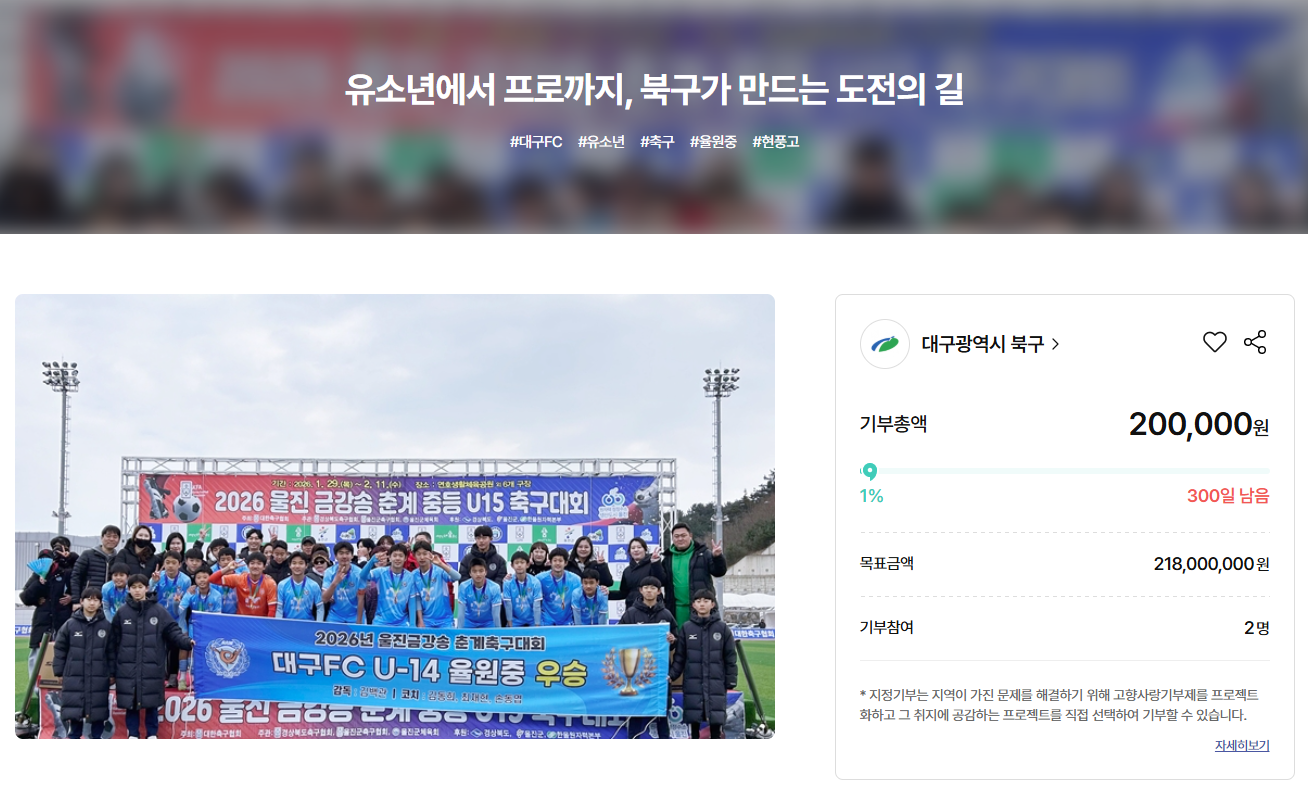 ▶ ‘유소년에서 프로까지, 북구가 만드는 도전의 길’ 지정기부, 지금 보러 가기