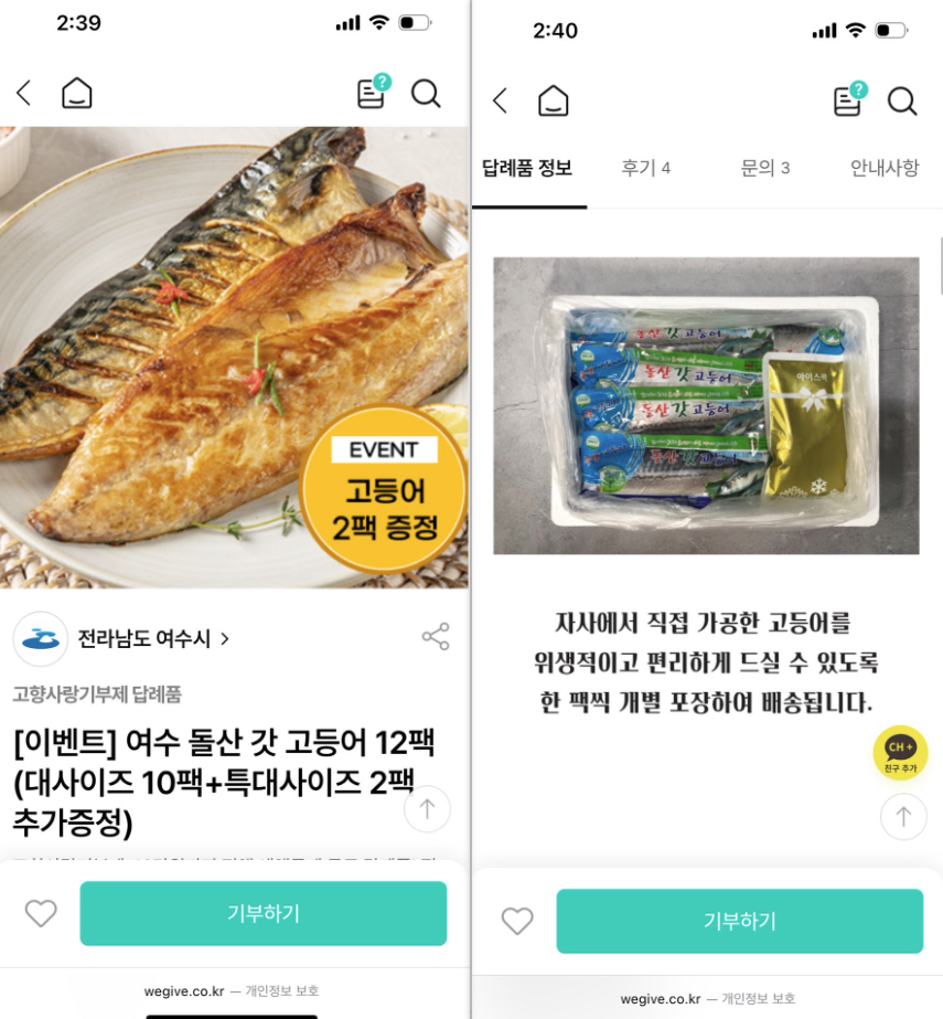 원본 보러가기 ▶ 고향사랑기부제 후기 | 위기브로 여수 고등어 답례품 받아본 솔직 후기