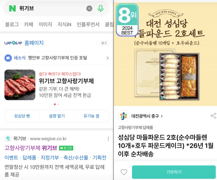 이상 25년 위기브에서 고향사랑기부제를 알뜰히 구매한