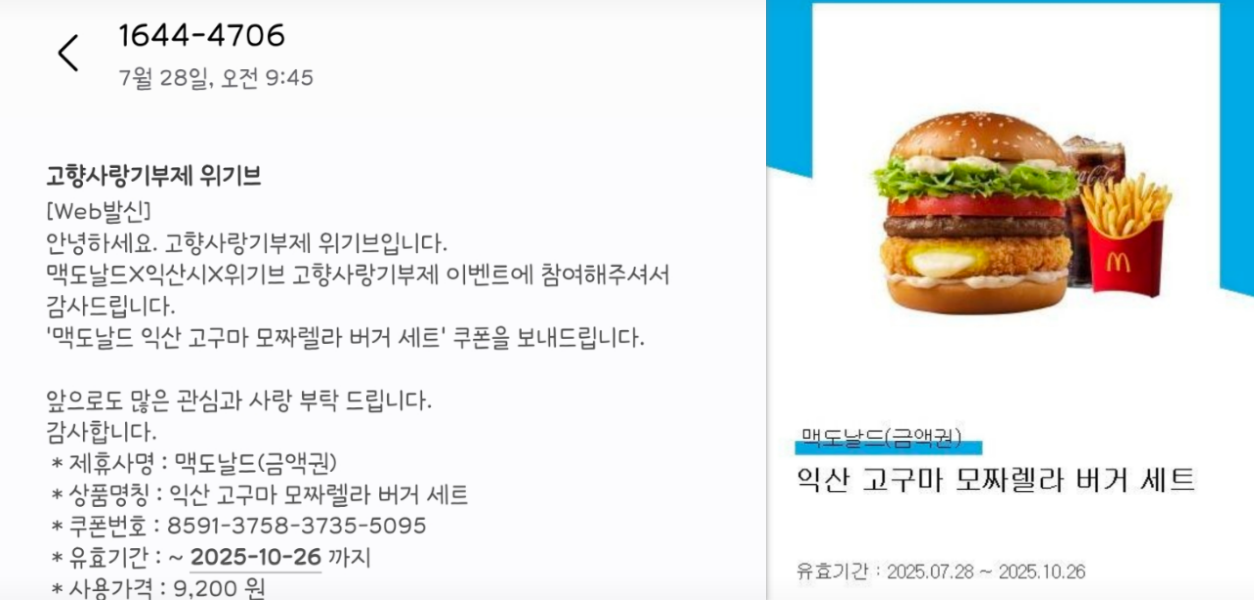 제가 위기브 이용할당시 맥도날드에서 익산 고구마 모짜렐라를 밀고있었는데 엄청 맛있어보이더라구요.