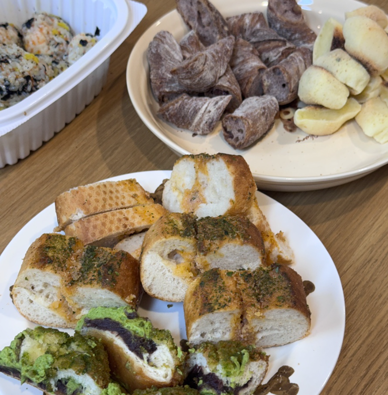 저녁에 친구들과 함께 저녁을 먹으며 오늘 사온 빵들과 케이크를 먹었는데, 역시 명란은 명불허전.