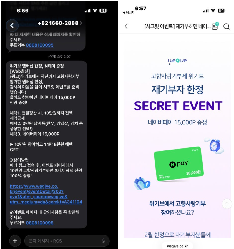 저는 주로 연말에 고향사랑 기부제 기부를 진행을 했었는데, 설날 이벤트로 고향사랑 기부제 재기부를 진행하면 네이버 포인트 15,000를 제공한다는 이벤트 문자를 보고 기부를 바로 진행하게 되었습니다.(물론 재기부이지만, 다른 지자체에 기부 가능하며 답례품도 다른 상품을 선택할 수 있었습니다)