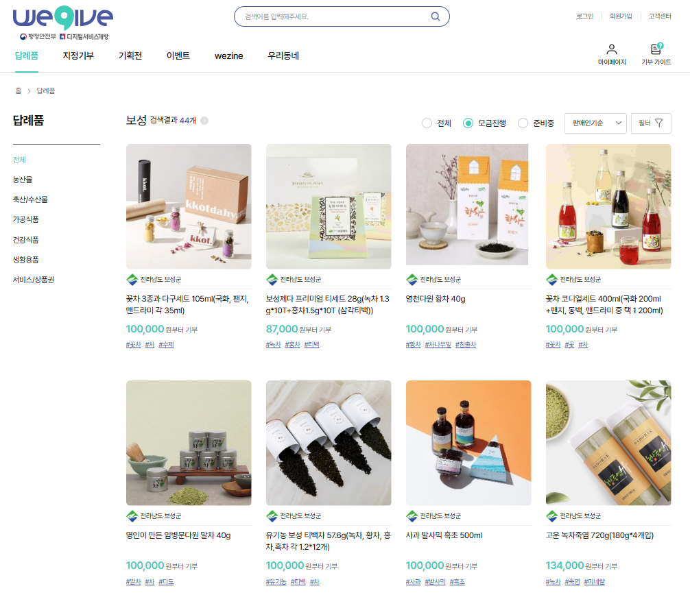 4️⃣ 위기브 답례품으로도 보성 녹차를 만날 수 있어요