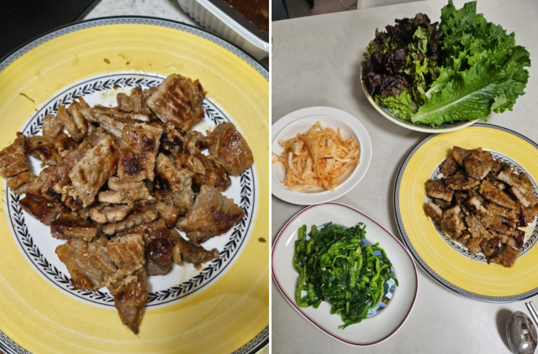 양은 후라이팬하나를 가득채우고도 큰 고기가 하나 더있을정도! 푸짐푸짐